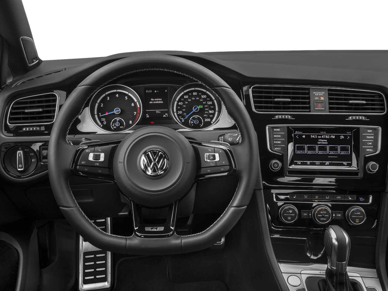 This vehicle comes equipped with: 4-Wheel Disc Brakes, 9 Speakers, ABS brakes, Adaptive suspension, Air Conditioning, Alloy wheels, AM/FM radio: SiriusXM, Anti-whiplash front head restraints, Auto-dimming Rear-View mirror, Automatic temperature control, Brake assist, Bumpers: body-color, CD player, Compass, Driver door bin, Driver vanity mirror, Dual front impact airbags, Dual front side impact airbags, Electronic Stability Control, Emergency communication system: VW Car-Net, Exterior Parking Camera Rear, Four wheel independent suspension, Front anti-roll bar, Front Bucket Seats, Front Center Armrest, Front dual zone A/C, Front reading lights, Fully automatic headlights, Headlight cleaning, Heated door mirrors, Heated front seats, Heated Top Sport Front Seats, High intensity discharge headlights: Bi-Xenon, Illuminated entry, Leather Seating Surfaces, Leather Shift Knob, Low tire pressure warning, Navigation System, Occupant sensing airbag, Outside temperature display, Overhead airbag, Overhead console, Panic alarm, Passenger door bin, Passenger vanity mirror, Power door mirrors, Power driver seat, Power passenger seat, Power steering, Power windows, Radio data system, Radio: Discover Media w/6.5 Touchscreen Nav, Rain sensing wipers, Rear anti-roll bar, Rear reading lights, Rear seat center armrest, Rear window defroster, Rear window wiper, Remote keyless entry, Security system, Speed control, Speed-sensing steering, Speed-Sensitive Wipers, Split folding rear seat, Spoiler, Sport steering wheel, Steering wheel mounted audio controls, Tachometer, Telescoping steering wheel, Tilt steering wheel, Traction control, Trip computer, Turn signal indicator mirrors, Variably intermittent wipers, and Wheels: 19 Cadiz Alloy.