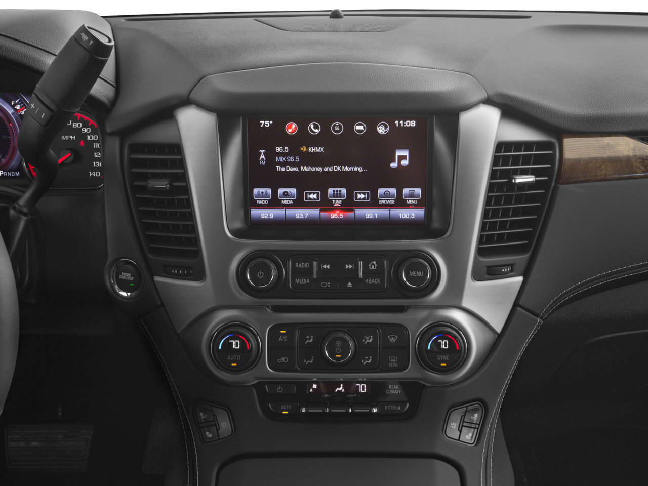 - Audio system, 8" Diagonal Color Touch Screen Navigation with GMC Infotainment System AM/FM/SiriusXM stereo with seek-and-scan and digital clock, includes Bluetooth® streaming audio for music and select phones; voice-activated technology for radio and phone; and Shop. Featuring Apple CarPlay and Android Auto capability for compatible phone; 5 USB ports and 1 auxiliary jack