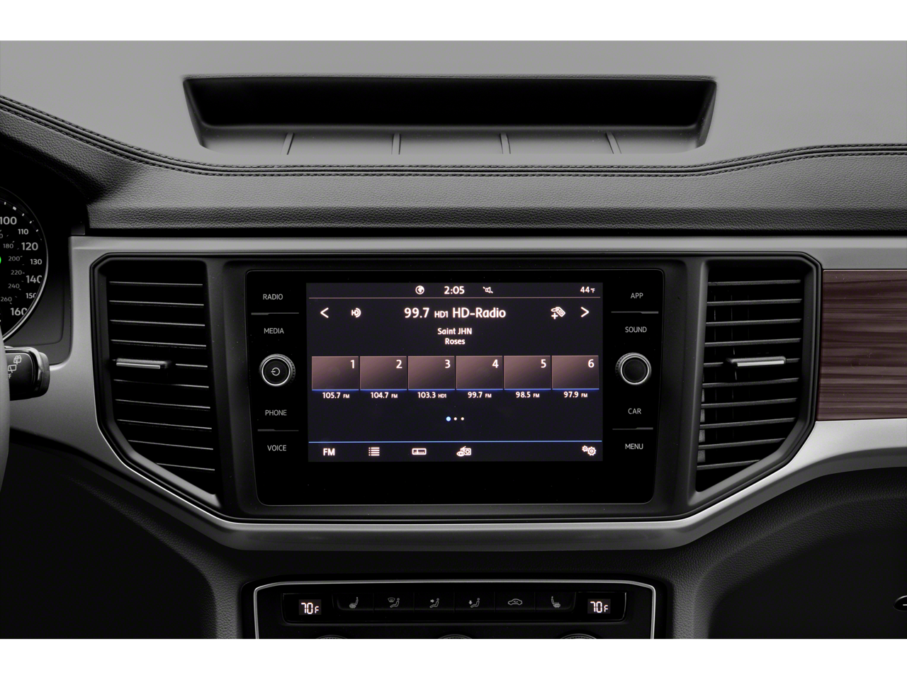 - Radio: Composition Media w/8" Touchscreen -inc: AM/FM/HD Radio and WMA/MP3/FLAC/CD player w/USB inputs, voice control, capability for in-vehicle 4G LTE enabled Wi-Fi (cellular data plan required; includes limited trial), capability for VW Car-Net services (capabilities for certain services vary; requires enrollment or subscription), 6-speaker sound system, Bluetooth® connectivity (for compatible devices), SiriusXM (w/3-month all access trial subscription), VW Car-Net App-Connect smartphone integration and interface (w/Apple CarPlay, Android Auto and MirrorLink) via USB and wireless inductive charger (for compatible devices)