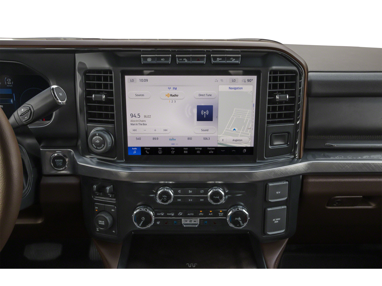 - SYNC 4 w/Enhanced Voice Recognition -inc: 12" LCD capacitive touchscreen w/swipe capability, information on demand panel, wireless phone connection, cloud connected, AppLink w/app catalog, 911 Assist, Apple CarPlay and Android Auto compatibility, digital owner's manual, conversational voice command recognition and connected built-in navigation w/complimentary 3-year trial for eligible vehicles that begins on the new vehicle warranty start date, Customers must unlock the navigation service trial by activating the eligible vehicle w/a FordPass member account, If not subscribed by the end of the complimentary period, the connected navigation service will terminate, and the system will revert to embedded offline navigation, Navigation services require SYNC4 and Ford Pass Connect (optional on select vehicles), complimentary connect service and the FordPass app (see FordPass terms for details), Connected service and features depend on compatible AT&T network availability, Evolving technology/cellular networks/vehicle capability may limit functionality and prevent operation of connected features, FordPass app, compatible w/select smartphone platforms, is available via a download, Message and data rates may apply