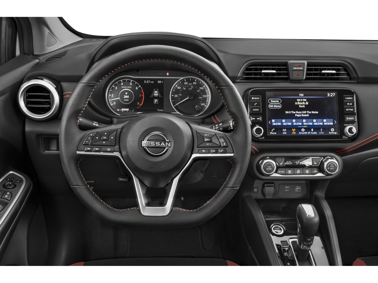 - Radio: AM/FM Audio System -inc: RDS, MP3, aux-in, 8" color touchscreen display, SiriusXM Radio, NissanConnect Services, Wi-Fi Hotspot, Bluetooth® hands-free phone system, streaming audio via Bluetooth®, interface for iPod and other compatible devices, hands-free text messaging assistant, Siri Eyes Free/Google Assistant voice recognition, 6 speakers, 12-volt DC power outlet and 3 USB ports (2-charge only)