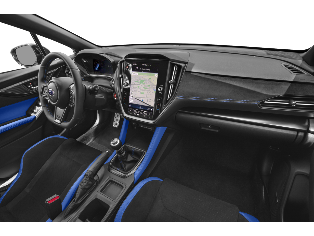 This vehicle comes equipped with: 11 Speakers, 4-Wheel Disc Brakes, ABS brakes, Air Conditioning, Alloy wheels, AM/FM radio: SiriusXM, Auto High-beam Headlights, Automatic temperature control, Brake assist, Bumpers: body-color, Driver door bin, Driver vanity mirror, Dual front impact airbags, Dual front side impact airbags, Electronic Stability Control, Emergency communication system, Exterior Parking Camera Rear, Four wheel independent suspension, Front anti-roll bar, Front Bucket Seats, Front Center Armrest, Front dual zone A/C, Front fog lights, Front reading lights, Fully automatic headlights, harman/kardon® Speakers, Heated door mirrors, Heated front seats, Illuminated entry, Knee airbag, Leather Shift Knob, Leather steering wheel, Low tire pressure warning, Navigation System, Occupant sensing airbag, Outside temperature display, Overhead airbag, Overhead console, Panic alarm, Passenger door bin, Passenger vanity mirror, Performance Design Recaro Heated Frt Bucket Seats, Power door mirrors, Power driver seat, Power steering, Power windows, Radio data system, Radio: Subaru 11.6 Multimedia System w/Navigation, Rear anti-roll bar, Rear seat center armrest, Rear window defroster, Remote keyless entry, Security system, Speed control, Speed-sensing steering, Split folding rear seat, Spoiler, Sport steering wheel, Steering wheel mounted audio controls, Tachometer, Telescoping steering wheel, Tilt steering wheel, Traction control, Trip computer, Turn signal indicator mirrors, Ultrasuede & Leather-Trimmed Seats w/Blue Bolsters, Variably intermittent wipers, and Wheels: 19 x 8.5 Satin Gray Finish Alum Alloy.