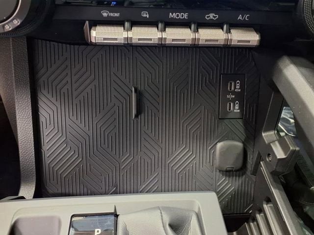 This vehicle comes equipped with: 2.4L I4 PDI Hybrid Turbocharged DOHC 16V, 3.583 Axle Ratio, 4-Wheel Disc Brakes, 6 Speakers, ABS brakes, Air Conditioning, Alloy wheels, AM/FM radio: SiriusXM, Anti-whiplash front head restraints, Apple CarPlay/Android Auto, Auto High-beam Headlights, Auto-dimming Rear-View mirror, Automatic temperature control, Brake assist, Bumpers: body-color, Driver door bin, Driver vanity mirror, Dual front impact airbags, Dual front side impact airbags, Electronic Stability Control, Emergency communication system: Safety Connect (1-year trial), Exterior Parking Camera Rear, Fabric Seat Trim, Four wheel independent suspension, Front anti-roll bar, Front Bucket Seats, Front Center Armrest, Front fog lights, Front reading lights, Fully automatic headlights, Heated door mirrors, Illuminated entry, Knee airbag, Leather Shift Knob, Leather steering wheel, Low tire pressure warning, Navigation system: Drive Connect (1 year trial) includes Cloud Navigation with real time traffic and Google POI, Occupant sensing airbag, Outside temperature display, Overhead airbag, Overhead console, Panic alarm, Passenger door bin, Passenger vanity mirror, Power door mirrors, Power steering, Power windows, Radio: 8 Toyota Audio Multimedia, Rear step bumper, Rear window defroster, Remote keyless entry, Security system, Speed control, Speed-sensing steering, Split folding rear seat, Steering wheel mounted audio controls, Tachometer, Telescoping steering wheel, Tilt steering wheel, Traction control, Trip computer, Turn signal indicator mirrors, Variably intermittent wipers, and Wheels: 18 TRD Sport Alloy.